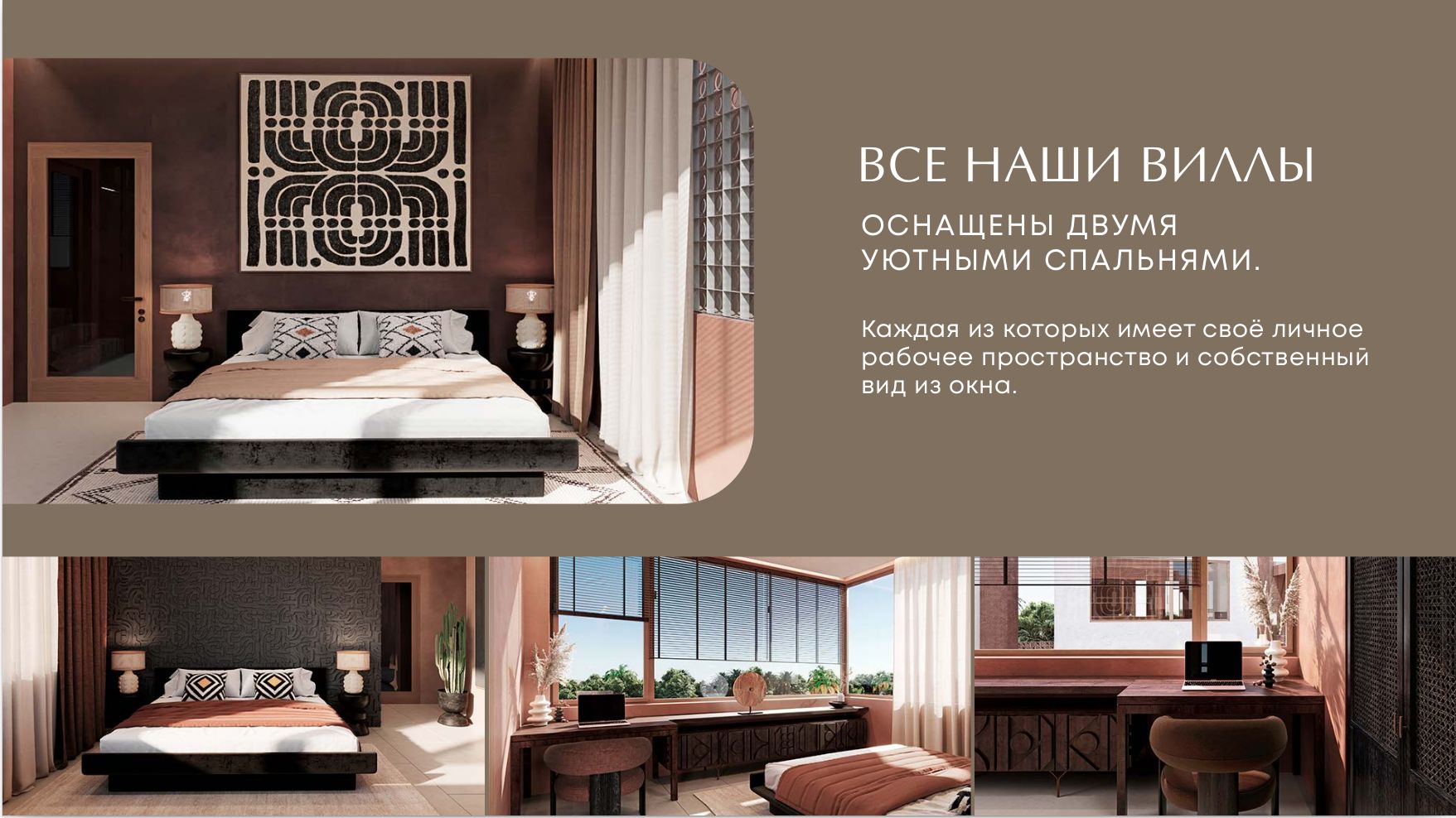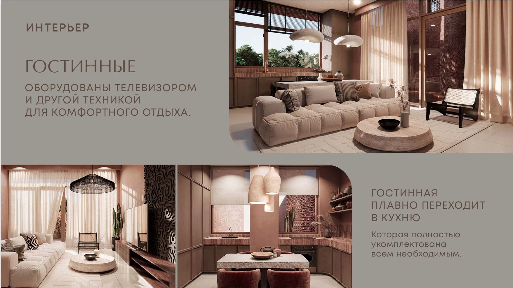 Интерьер Savanna Villas сочетает спокойствие, элегантность и естественное вдохновение от окружающей природы.